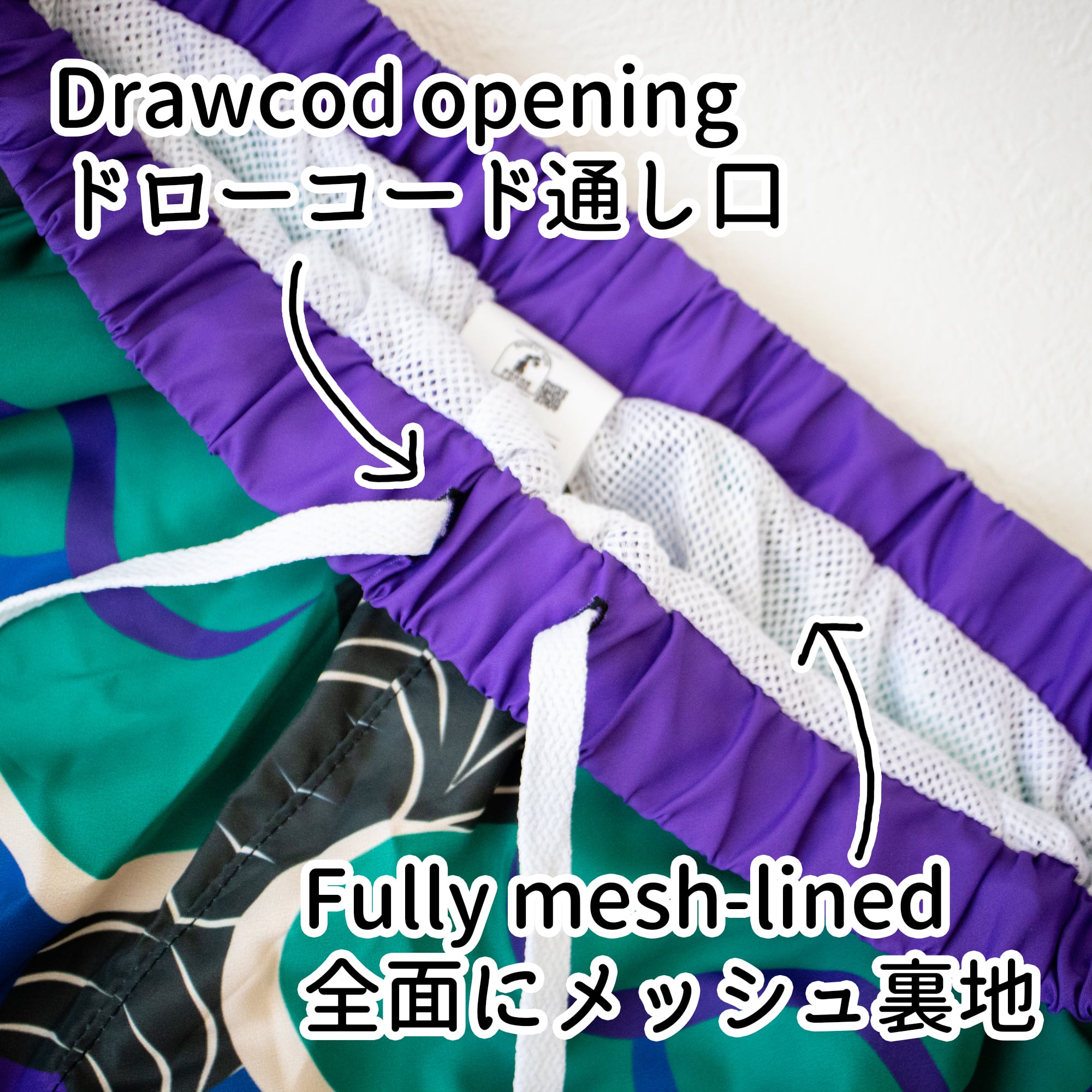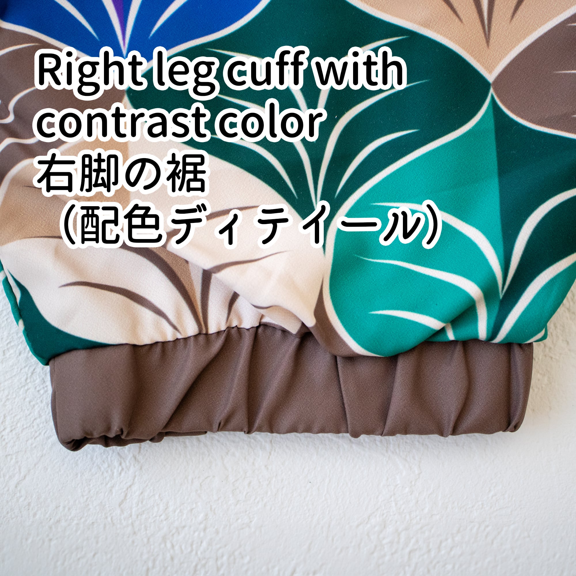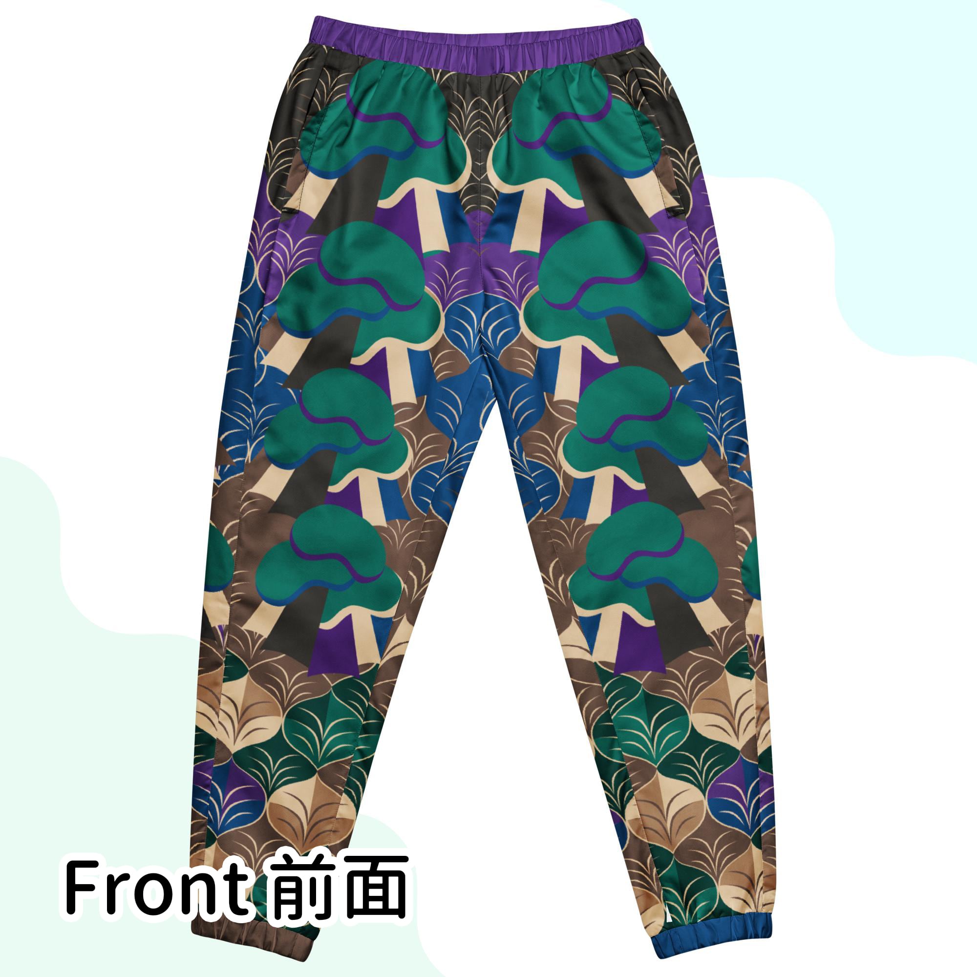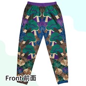 These track pants are printed all over with two fully original patterns—pine branches and broadleaf foliage—designed in-house and inspired by the quiet beauty of bonsai. Rendered in five earthy tones—green, blue, purple, brown, and black—they blend quiet elegance with bold visual impact. We call it: bonsai camo.